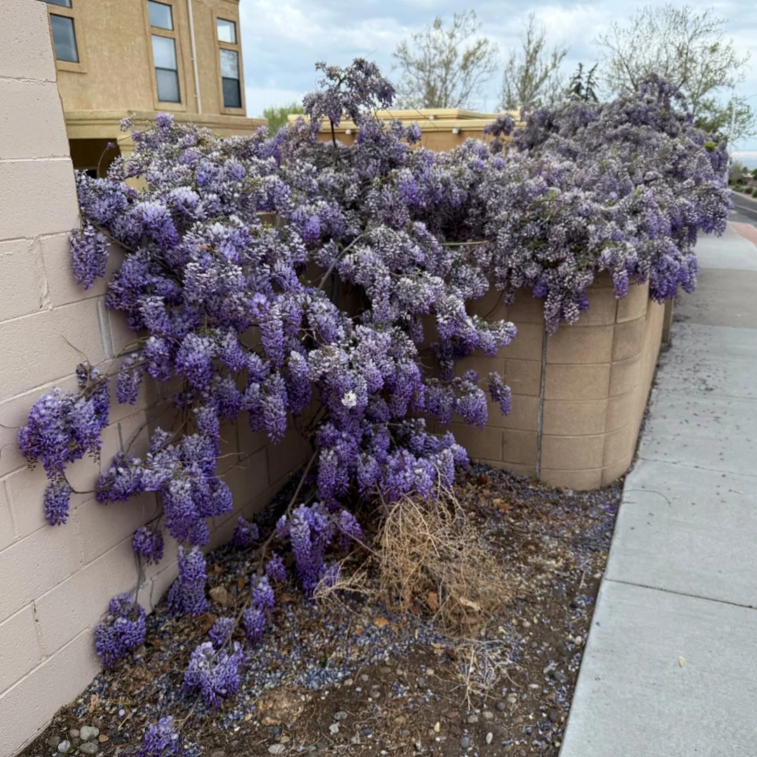 While driving presented a lot of anxiety, it also provided a lot of spring-time beauty. I’ve been watching wisteria crawl over cinderblock walls around Albuquerque for weeks now, like thousand-legged tarantulas.